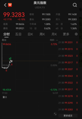 今日(3月24日),截至北京时间9:30,美元指数报99.3283。